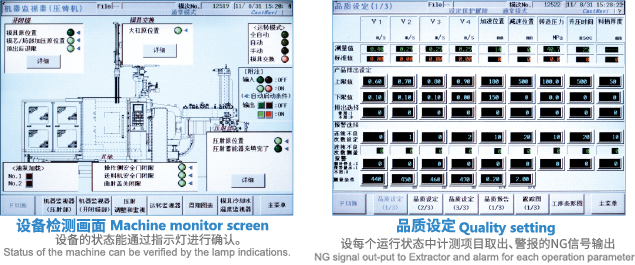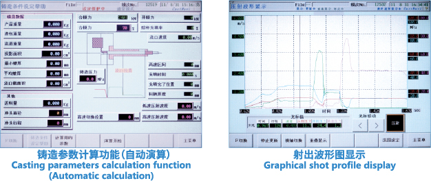 能够全面掌握压铸的全过程,铸造条件集中在触摸屏上设定各种参数,动作一目了然,操作方便并可存储100套产品圧射参数,使用更便捷。