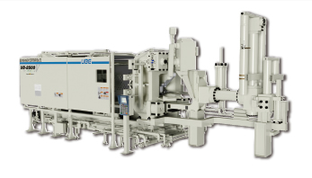 - センタープレス方式でたわみ低減、高剛性化。型締力を金型面全体に均一に配分することにより、鋳造バリ吹き低減、低圧鋳造、型締力低減に効果を発揮。