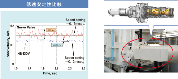 小スペースを実現する電動式型開閉/油圧式型締のハイブリッド型締装置を採用。